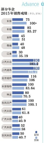 從單個企業來看,多數自主車企都實現了年初制定的銷售目標,長安汽車更是超越眾多合資品牌,在2015年產銷雙雙實現突破100萬輛,在乘用車 銷量排名中位列第五,而年初長安為自己設定的銷售目標為75萬輛。在SUV和新能源汽車兩個細分市場的發力,讓長安超額完成了銷售任務。