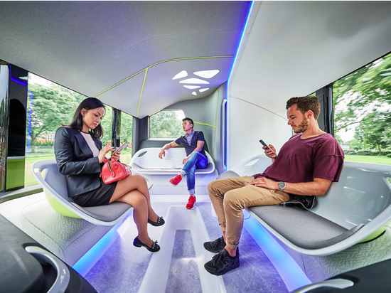 自駕公交車內部當然不能和普通公交車那麼平凡,所以梅賽德斯拿出的是類似于休息室的設計。