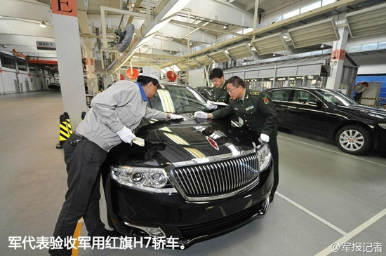 另據解放軍報2014年報道,“5月中旬,由總裝車船軍代局某軍代室驗收發運的首批千余臺軍用紅旗H7轎車,順利交付部隊。這是繼廣汽傳祺和一汽奔騰轎車之後,又一列入軍隊公務用車的國產自主品牌轎車,標志著我軍用公務用車訂購全面實現國產化”。