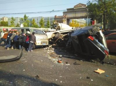 附近一商販稱,事發時許多車輛都在等紅燈,一輛奧迪轎車突然從後方快速駛來,連撞前方的車輛。從目擊者提供的視頻可見,事故造成面包車、雪佛蘭、奧迪等多輛車被損毀,斑馬線附近有傷者趴在地上,地面可見大量車輛碎片。被撞車主夏先生告訴記者,“當時突然感覺車右後方被撞了一下,隨後我的車就不受控制,撞到了前面一輛面包車,我下車看到我車右後方的輪胎已經被撞沒了”。