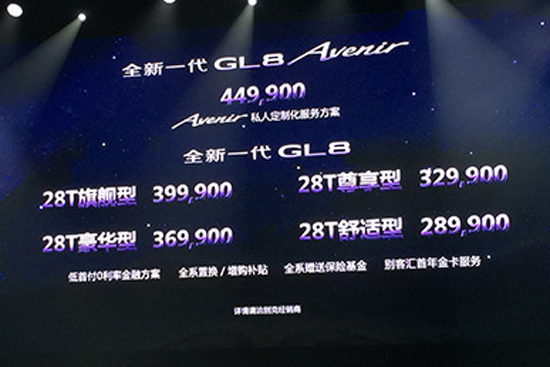 11月5日,上汽通用別克全新一代GL8正式上市。在28.99萬-44.99萬元的售價區間里,全係標配2.0T發動機的5款車型可供消費者選擇。其中,頂配版車型是別克最新發布的Avenir子品牌旗下首款車型,售價為44.99萬元,與多款進口MPV車型如豐田塞納、阿爾法和克萊斯勒大捷龍、日產貴仕等競爭。