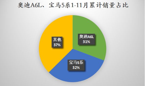 奧迪A6L、寶馬5係1-11月累計銷量佔比