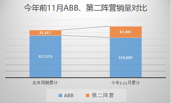 德係“三駕馬車”ABB與第二陣營佔據C級車前六席位。對比去年銷量數據可以看出,今年前11月ABB合計銷量31.1萬輛,去年同期32.8萬輛,同比微降5%。除受奔馳E級換代前夕銷量“凍結效應”的影響之外,奧迪A6L、寶馬5係累計銷量分別同比下降4.92%、2.38%,ABB份額被第二陣營蠶食。