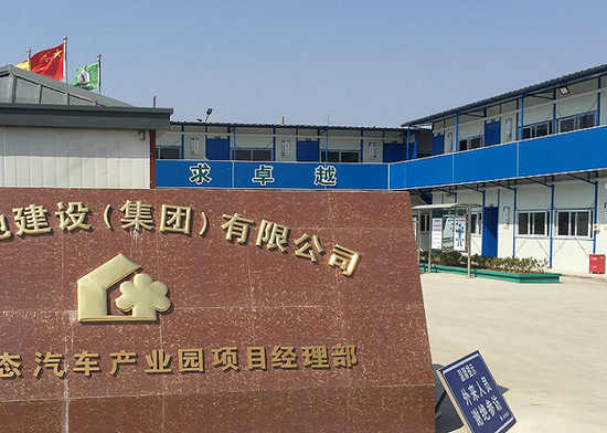 e公司記者發現,樂視生態汽車產業園項目經理部緊鄰馬路一側,是一個裝修中的警務室,在荒郊的工地上顯得格外搶眼。
