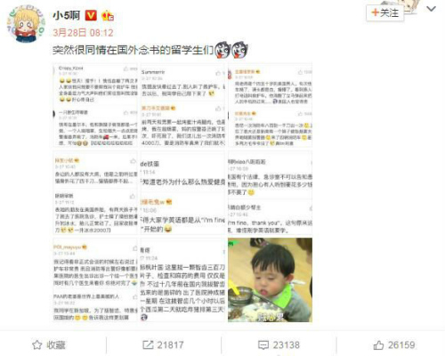 在擁有400多萬粉絲的微博博主“小5啊”轉發該微博後,至29日中午,該話題已經獲得了超過了2萬條評論,被2萬多次轉發。