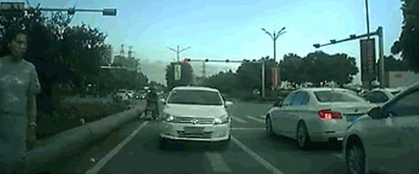 根據中山交警提供的視頻監控顯示,7月28日17時許,一輛粵T號牌車在小欖民安南路與小欖工業大道交匯處紅綠燈路口等紅燈轉綠燈起步時,一輛粵S號牌車突然從右側車道違規變道到左側車道,並與後方粵T號牌車發生輕微碰撞。