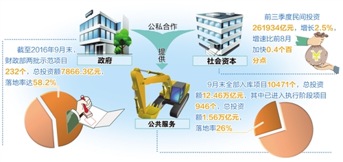 日前,財政部政府和社會資本合作(PPP)中心發布統計數據顯示,截至2016年9月末,財政部兩批示范項目232個,總投資額7866.3億元,落地率達58.2%。