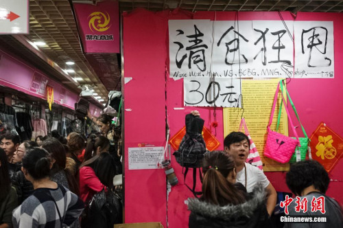 資料圖:2015年12月30日,市民在“動批”聚龍外貿服裝商城掃貨。 中新社記者 熊然 攝