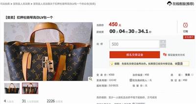 截至下午5時30分,這件“高倣LV包”已獲得網友2226次圍觀,有4人參與競拍。北青報記者注意到,這件“高倣LV包”原本變賣價為350元,每次加價幅度為50元,當天下午5時30分,這件物品已被競價至450元。