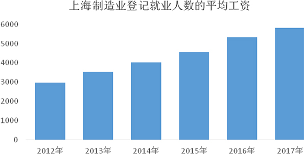 來自上海市人社局的統計數據顯示,2017年3月,上海制造業登記就業人員平均月工資為5816元,2012年以來年均漲幅為14.1%,既高于同期GDP的增長幅度,也高于上海職工平均工資增速。