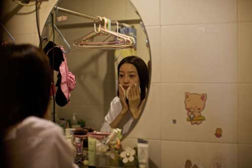起床後正洗漱的瀅瀅。她說:“和陌生人交流,瞬間和網友變得親密無間對于我來說是不可能的,別說是陌生人了,連熟悉的朋友有時候都沒有太多交流,既然決定了做主播,這方面多多少少會改變一下,要完全改變就不是我了,我不能因為這個失去自己。”