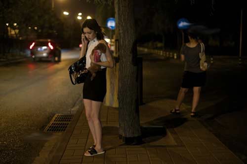 做完活動在路邊等車的瀅瀅。小狗是她最親密的夥伴,這些天不論到哪都帶著它一起。