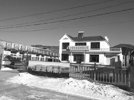 1月8日,馬侍郎橋村一戶人家的院門和樓房上,還挂著拍攝《鄉村愛情故事8》所用的道具牌子,但這部電視劇雖已殺青,播出卻成了未知數。 本報記者 陳瑋 攝