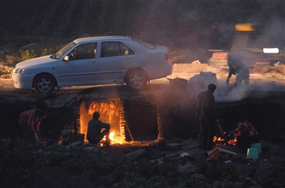 1月20日,四川達州,當地民眾在政府規劃點或城郊自行熏制臘肉。此前,當地有官員排查空氣質量重度污染的源頭時,發現熏臘肉成了達州空氣質量差的主要誘因。