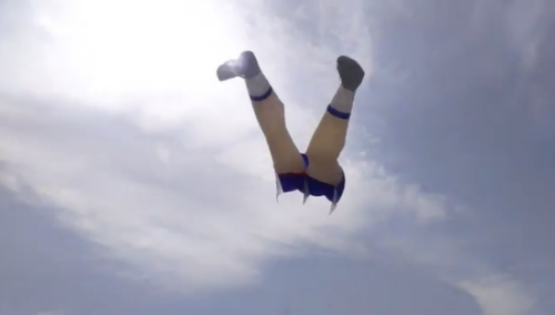 當時,不少人都在放風箏,但是其中有一只風箏格外引人注目,即一只形似人腿的奇特風箏,甚至連襪子、短褲都配置齊全。
