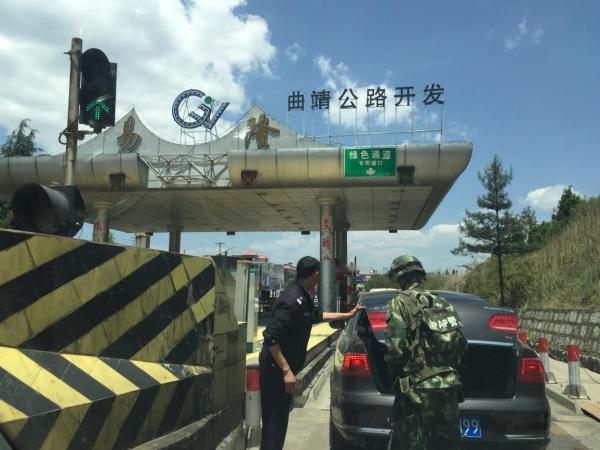 昆明至馬龍,一路上均有持槍警察設卡。澎湃新聞記者 王萬春 圖
