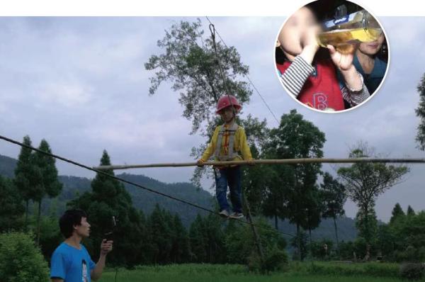 事實上,“6歲娃喝兩瓶啤酒”已不是望望第一次成為網紅了。今年1月,望望在張禹的訓練下學會走鋼絲,一組望望戴著安全帽,端著竹竿,在河堤鋼絲上行走的照片開始在網上流傳,也引來了多家媒體的關注報道。