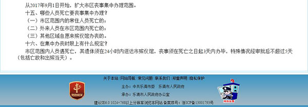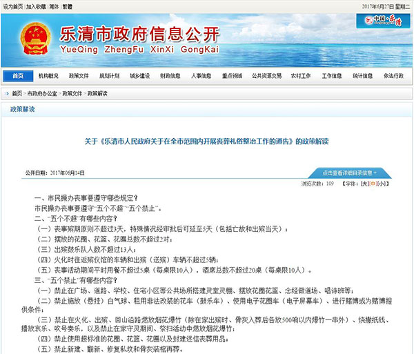 浙江樂清市政府日前下發《關于在全市范圍內開展喪葬禮俗整治工作的通告》,將從7月起施行。