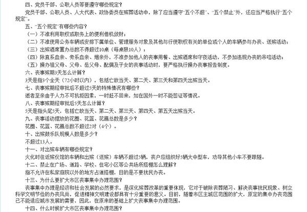 “喪事殯期原則不超過3天”,“擺放的花圈、花籃、花匾總數不超過4個”,“屬于市區喪事集中辦理范圍內的,遺體24小時內送至市殯儀館存放……”