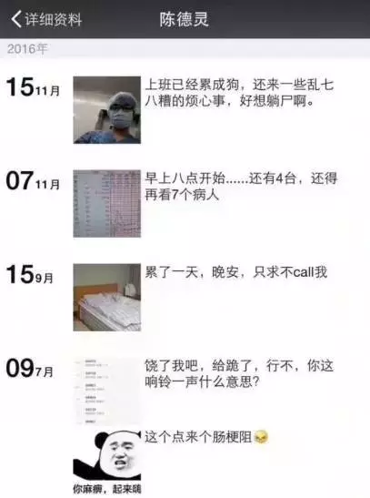 再翻看他之前的朋友圈,總是在勞累的上班、值班之中,“一宿沒睡”更是家常便飯!