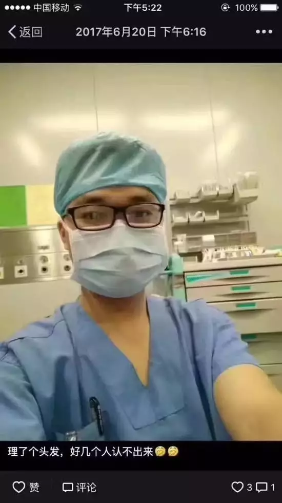 據網友提供的陳醫生的朋友圈截圖,其中顯示:“黑+白+黑,下班啦,還活著真好。”時間為2017年4月19日。