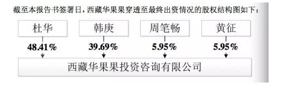這次收購中,由韓庚、周筆暢和黃徵入股的西藏華果果將獲得1.28億元。其中,其中韓庚持股39.69%,周與黃二人各自持有5.95%。