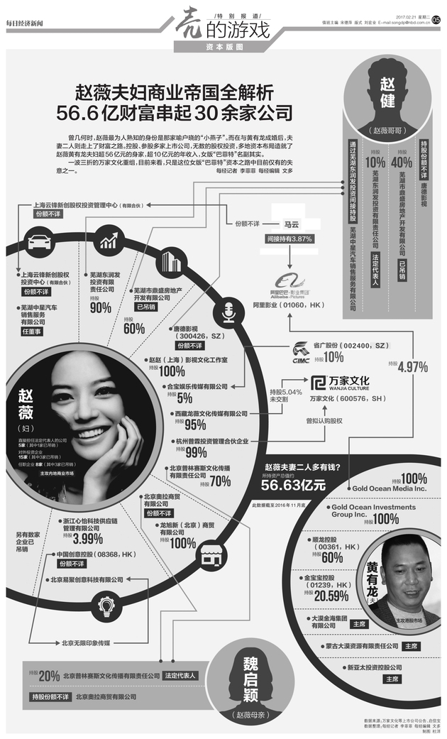 曾幾何時,趙薇最為人熟知的身份是那家喻戶曉的“小燕子”。而在與黃有龍成婚後,夫妻二人則走上了財富之路。控股、參股多家上市公司,無數的股權投資,多地資本布局造就了趙薇黃有龍夫婦超56億元的身家,超10億元的年收入,女版“巴菲特”名副其實。