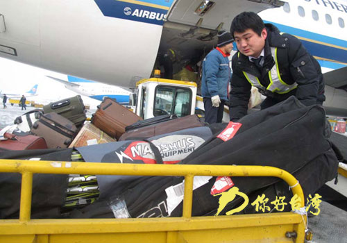 南航中轉工作人員保障伊斯坦布爾急轉臺北旅客的行李(你好臺灣網 圖 袁存存 攝)
