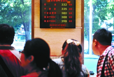 記者從菜百公司相關負責人口中了解到,本次調價是今年以來金價第9次下調。(記者 汪震龍 攝影報道)