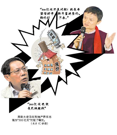 對于馬雲背靠300億元日銷售額所放出的、希望借助市場力量將房價打下去的言論及與王健林的賭局,地產名人們紛紛反擊。