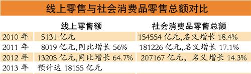 傳統零售幾乎停止增長但佔比仍超90% 在線零售年增70%但佔比想超50%還很難