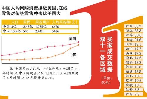 雙十一爆炸性增長,使得今年在線零售佔社會消費品零售總額有望接近10%,去年則超過6%,其威力開始顯露。阿里巴巴一位人士說:“一般來說,低于5%的事情,還難以進入統計。但一旦佔到社會消費品零售總額5%,就不同了,會越過臨界點,呈現爆發之勢,並開始產生全局影響,成為改變中國的零售業格局的起點。”