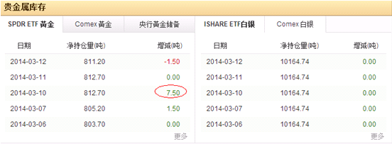 黃金交易所交易基金(ETF)黃金持有量上升,成為黃金人氣回暖又一跡象。周一交易日結束時,全球最大黃金ETF SPDR Gold Shares 買入7.5噸黃金,為2月13日以來買入最多的一次。SPDR Gold Shares目前持有812.7噸黃金,較年初上升1.8%。這些現象均顯示,無論是散戶投資者還是機構投資者,對黃金的投資意願均顯著增強。