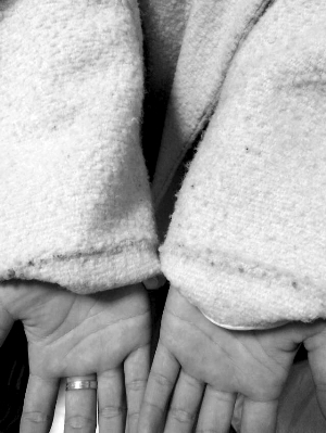 北京晨報記者從張女士提供的照片中看到,衣服的衣角和袖口處顏色較深,跟其他區域有明顯差別,尤其在袖口處,兩圈污漬非常扎眼。