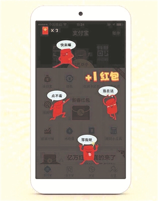還記得去年春節,微信紅包橫空出世,朋友見面必問一句“你搶了嗎”。相關數據顯示,2014年除夕夜參與紅包活動的總人數達到482萬人次,最高峰時每分鐘就有2.5萬個紅包被拆開。今年的紅包大戰花樣更多,現金紅包之余還有消費券、兌換券等,支付寶等更多互聯網企業進入,也給用戶提供了更多選擇。比如支付寶錢包近日就宣布,從小年夜到正月初一將向用戶發放約6億元的紅包。