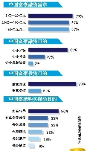 不過,這些有錢人缺錢,超7成有融資需求,且融資目的以企業發展為主。報告稱,融資的首要目的是為了企業擴張,其次是企業並購,而用于企業經營周轉的比例僅為8%。由此可見,中國超高凈值人群主要經營的企業正處于高速擴張及發展時期,資金需求較大。
