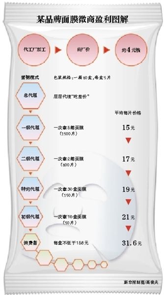 朋友圈中的“面膜們”如何出爐?新京報記者調查發現,通過網絡代辦公司,打造一款全新的“朋友圈”面膜,從公司注冊、產品設計到最終成品出廠上市銷售,最快的流程不到兩個月時間。一些沒聽過名字的“國際大牌”通過炫功能、造概念、搏出位、再通過層層代理加價賣給消費者。