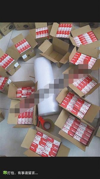 面膜代理商朋友圈中曬出的快遞單及待發貨物,營造出微商很忙很賺錢的樣子。