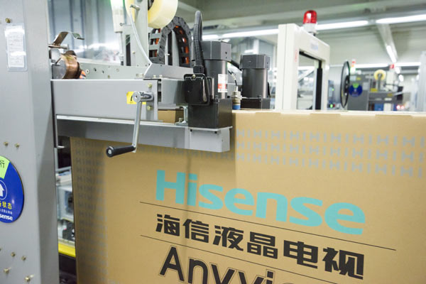 在海信的黃島電視工廠里,AGV小車來回穿梭于庫房與線體間,機器人、機械手和自動化專機正高效精準地實現產品的裝配、檢測、包裝,成品經自動分揀、碼垛、覆膜後,由AGV自動運送到指定的貨位......整個過程就如同一個技藝高超的裁縫在精心縫制他的華衣。