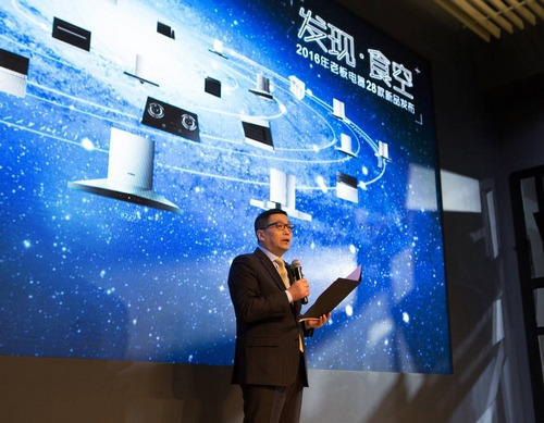 中新網3月10日電 3月9日,老板電器在上海2016年中國家電及消費電子博覽會上舉行年度首個新品發布會——“發現·食空”,發布包括油煙機、灶具、蒸箱、烤箱、洗碗機、凈水器、微波爐、消毒櫃,8類廚房電器在內的28款新品,並推出堪稱“油網的第三次革命”的復合式埃菲爾油網,同時智能化係統也在新產品上得到普及,推動廚電的智能化。