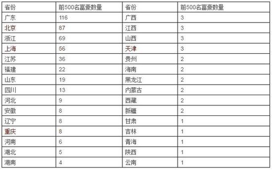 中國富豪的地理分布情況是怎樣的?
