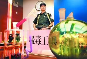 警方展示繳獲的吸毒工具。廣州日報記者莫偉濃攝