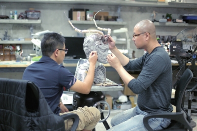 末那工作室的工作人員在制作《尋龍訣》的神女盔甲。