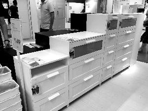 昨日記者來到宜家北京四元橋商場,在三層的家具展廳,抽屜櫃區域有數十款商品都在正常銷售中,這其中不乏已經列入“問題抽屜櫃”召回名單中的商品。但在這些商品的標簽以及抽屜內部底面,有關于安全安裝的提示三番五次地出現。賣場工作人員表示,宜家中國區域的售賣一直很注意這樣的安全提示,購買商品可免費領取加固附件。