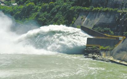 27日,紫坪鋪水庫1號泄洪洞正在泄洪。