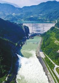 22時56分,重達300噸的一道閘門緩緩打開,閘門開度從0提升至0.4,紫坪鋪的水傾瀉而出,以每小時167公里的速度通過藏在山里的通道,再衝向岷江,在黑暗中騰起幾十米高的白色水霧。