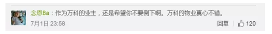 對于王石的上述微博,有粉絲稱:作為萬科業主,希望你不要倒下。