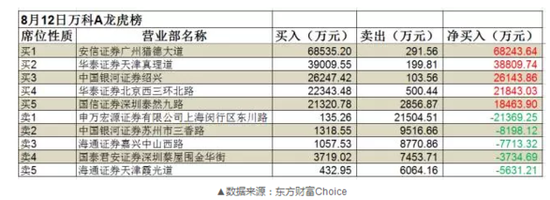 今天,又有資金直接將萬科A(000002,SZ)拉到漲停板上。盤後龍虎榜顯示,安信證券廣州獵德大道凈買入萬科A股6.82億元。