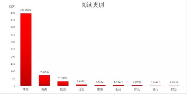 數據顯示,在所有與事件相關的文章中,除娛樂類內容收割近 4.97 億流量外,新聞、情感、社會、體育、育兒類內容同樣斬獲頗豐,以下為閱讀量:新聞類(71438280)、視頻(31396050)、社會(9636410)、情感(6654200)、時尚(6402740)、育兒(3380920)、文化(2687470)、財經(2604710)。