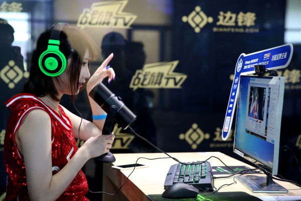 資料圖片:遊戲模特與玩家在線互動。新華社記者 任瓏 攝